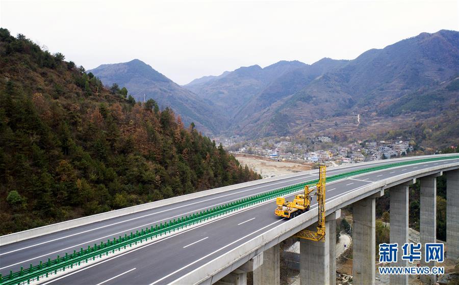 11月20日,在水陽高速公路左家灣特大橋上,橋梁檢測(cè)車在進(jìn)行通車前的檢測(cè)作業(yè)(無人機(jī)拍攝)。 近日,記者從陜西省交通建設(shè)集團(tuán)公司了解到,陜西柞水至山陽高速公路已全線貫通即將通車。據(jù)介紹,(柞)水(山)陽高速公路全長(zhǎng)78.8公里,開通后將實(shí)現(xiàn)包茂高速、福銀高速在陜南商洛地區(qū)的連接,開辟出秦嶺南麓的一條橫向高速大通道,對(duì)完善陜西高速公路路網(wǎng)結(jié)構(gòu)、促進(jìn)陜南區(qū)域經(jīng)濟(jì)發(fā)展、加快山區(qū)群眾脫貧致富具有重要意義。 新華社記者劉瀟攝