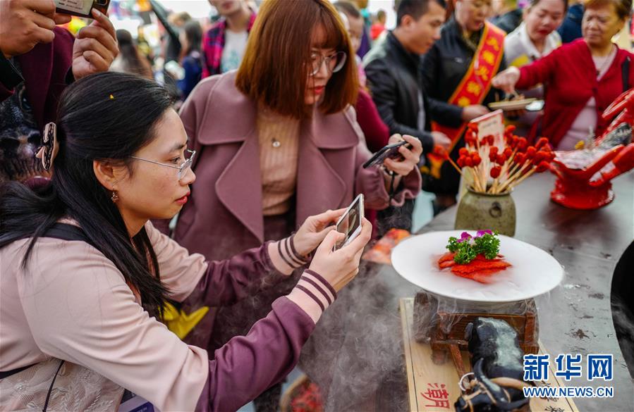 10月19日,重慶火鍋美食文化節(jié)現(xiàn)場展出的各色火鍋菜品吸引眾人拍攝。 當(dāng)日,第十屆中國(重慶)火鍋美食文化節(jié)在重慶市江北區(qū)正式開幕。本屆火鍋美食文化節(jié)為期4天,以“麻辣happy城市節(jié)日”為主題,50000平方米的展區(qū)吸引了70余個火鍋品牌、300余家火鍋供應(yīng)鏈企業(yè)參展,萬人同燙火鍋的盛況在“火鍋之都”重慶再現(xiàn)。 新華社記者 劉潺 攝