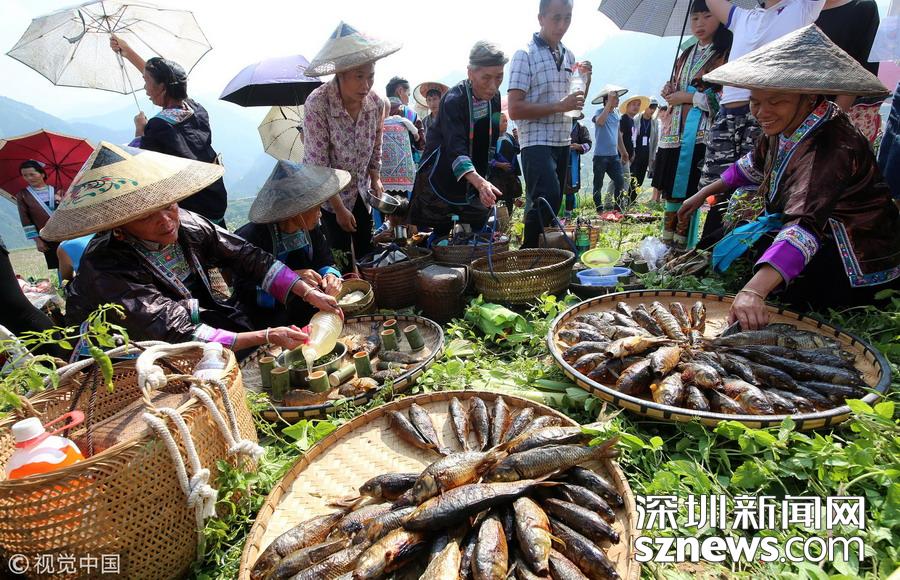 2018年11月19日,侗族同胞在參加貴州省從江縣慶云鎮(zhèn)“凍魚節(jié)”祭薩儀式。 據(jù)了解,“凍魚節(jié)”是當(dāng)?shù)亍笆稀倍弊逋赜械募漓雮鹘y(tǒng)節(jié)日,定在每年農(nóng)歷的10月12日,是人們紀(jì)念祖先遷徙而舉辦的規(guī)模盛大的節(jié)日,至今已有500多年的歷史。節(jié)日期間,主人邀請親友聚餐、參與慶?;顒?,共享豐收喜悅。