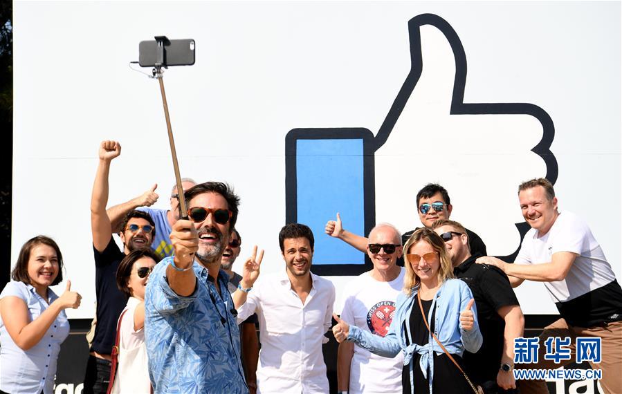 8月11日,在美國舊金山灣區(qū),參加“臉書節(jié)”的游客在臉書園區(qū)標(biāo)志前合影。當(dāng)日,舊金山灣區(qū)臉書園區(qū)舉行“臉書節(jié)”,人們在活動中欣賞文藝表演,品嘗美食,乘坐游樂設(shè)施等,活動收入將捐給慈善團體。新華社記者吳曉凌攝