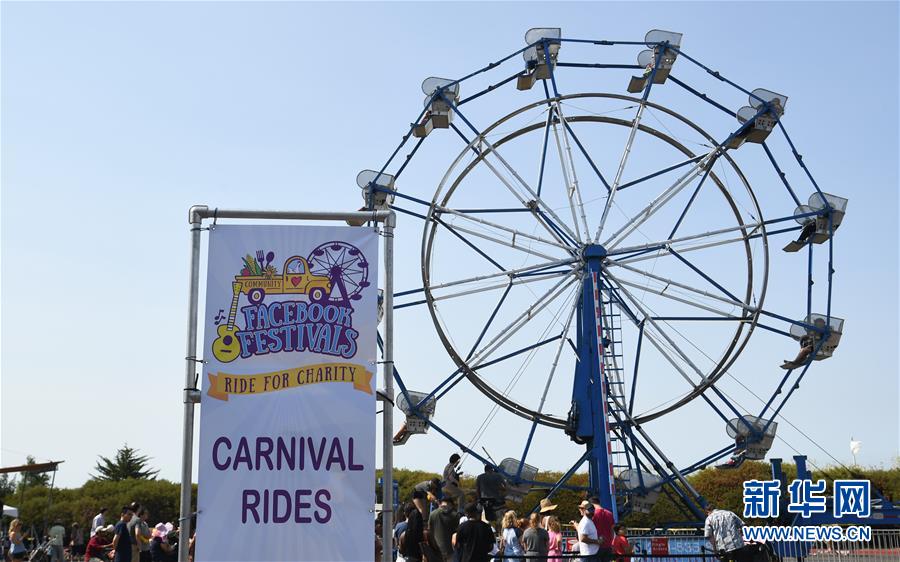 8月11日,在美國舊金山灣區(qū),人們在“臉書節(jié)”游戲區(qū)乘坐摩天輪。當(dāng)日,舊金山灣區(qū)臉書園區(qū)舉行“臉書節(jié)”,人們在活動中欣賞文藝表演,品嘗美食,乘坐游樂設(shè)施等,活動收入將捐給慈善團體。新華社記者吳曉凌攝