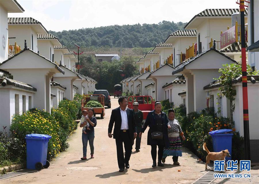 10月6日,在尋甸回族彝族自治縣塘子街道小海村,人們行走在村道上。國慶節(jié)期間,云南省尋甸回族彝族自治縣塘子街道小海村一片喜慶祥和。人們身著節(jié)日盛裝,載歌載舞,歡慶搬入新居后的第一個國慶節(jié)。新華社記者楊宗友攝