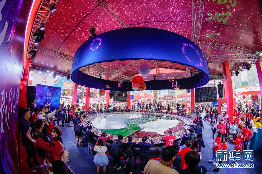 10月19日在重慶拍攝的火鍋美食文化節(jié)現(xiàn)場。 當(dāng)日,第十屆中國(重慶)火鍋美食文化節(jié)在重慶市江北區(qū)正式開幕。本屆火鍋美食文化節(jié)為期4天,以“麻辣happy城市節(jié)日”為主題,50000平方米的展區(qū)吸引了70余個火鍋品牌、300余家火鍋供應(yīng)鏈企業(yè)參展,萬人同燙火鍋的盛況在“火鍋之都”重慶再現(xiàn)。 新華社記者 劉潺 攝