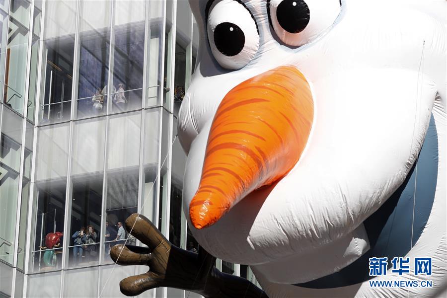當(dāng)日,第92屆梅西感恩節(jié)大游行在紐約舉行,各式各樣的玩偶?xì)馇颉⒒ㄜ囮犖樵诼D的摩天大樓間穿行,吸引數(shù)百萬民眾前來觀看。梅西感恩節(jié)大游行始于1924年,是全美規(guī)模最大的感恩節(jié)游行。