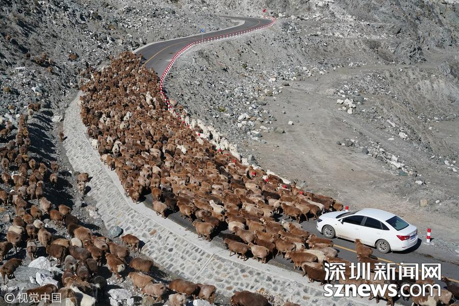 哈薩克族牧民趕著牛羊遷徙。