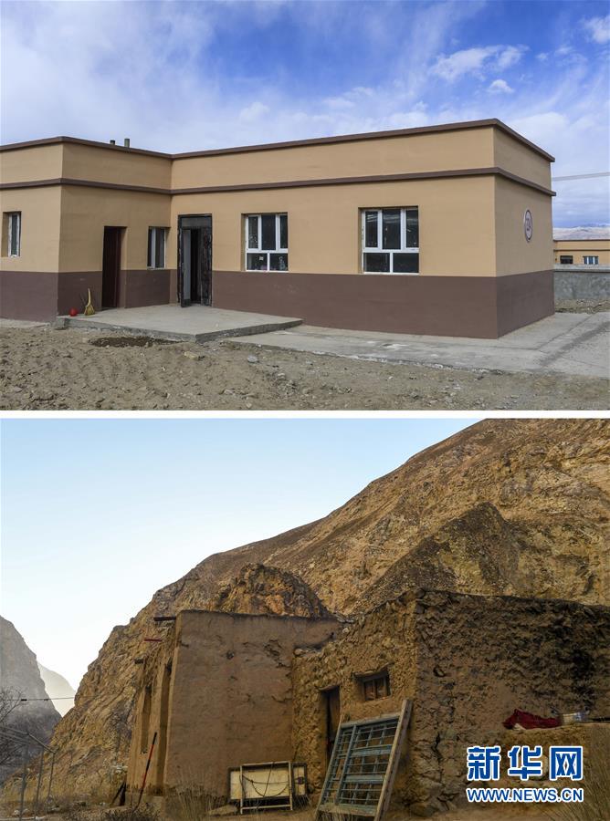 拼版照片:上圖為都熱·加爾曼在塔提庫力易地扶貧搬遷安置點(diǎn)的80平方米的新房(11月18日攝);下圖為都熱·加爾曼在阿克托尕欄桿村一組的老房子外景(11月17日攝)。新華社記者胡虎虎攝