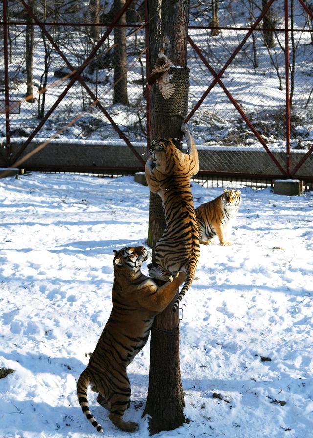東北虎林園:老虎爬樹(shù)抓雞“顯身手”