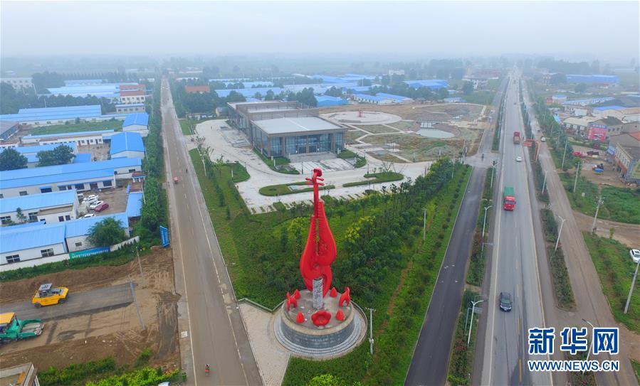 這是2017年9月5日無(wú)人機(jī)拍攝的位于河南蘭考縣堌陽(yáng)鎮(zhèn)的中國(guó)民族樂(lè)器博覽中心及其周邊的樂(lè)器廠廠房。新華社記者馮大鵬攝