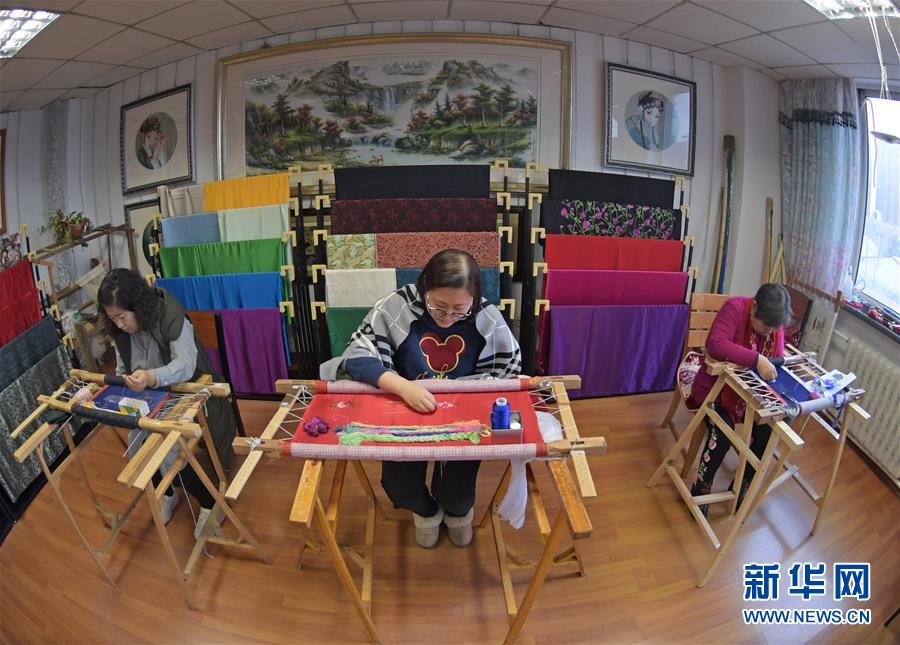 11月23日,繡娘在盛京滿(mǎn)繡工作室工作。新華社記者楊青攝
