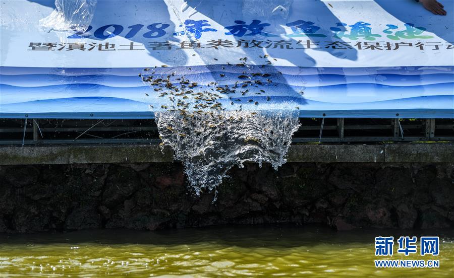 11月23日,滇池土著魚種被投放至湖中。新華社記者江文耀攝