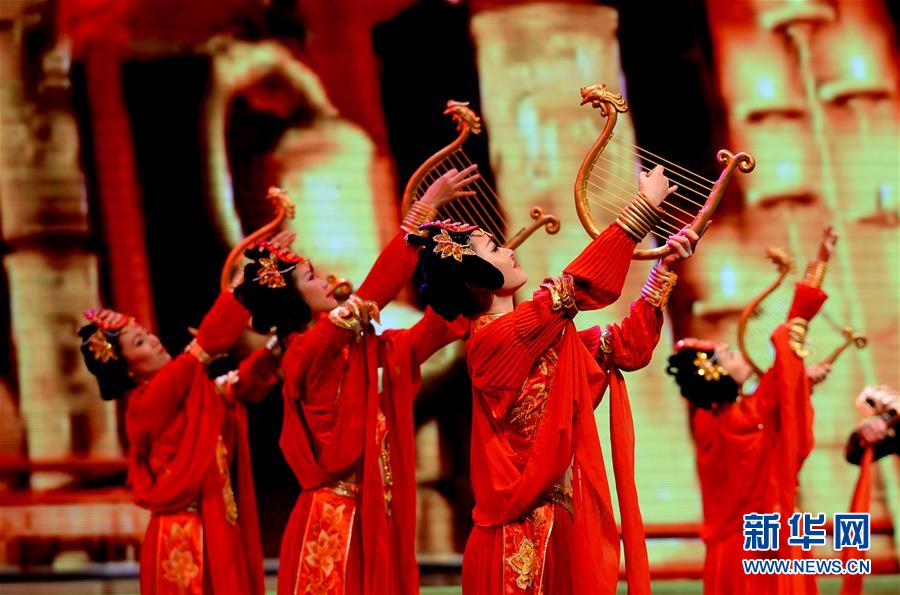 來自陜西的演員在西安大唐西市表演舞蹈《大唐禮賓》(2016年5月13日攝)。 新華社記者 劉瀟 攝