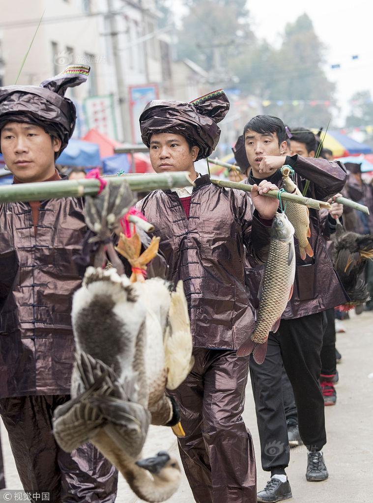 2018年11月19日,侗族同胞在參加貴州省從江縣慶云鎮(zhèn)“凍魚(yú)節(jié)”祭薩儀式。 據(jù)了解,“凍魚(yú)節(jié)”是當(dāng)?shù)亍笆稀倍弊逋赜械募漓雮鹘y(tǒng)節(jié)日,定在每年農(nóng)歷的10月12日,是人們紀(jì)念祖先遷徙而舉辦的規(guī)模盛大的節(jié)日,至今已有500多年的歷史。節(jié)日期間,主人邀請(qǐng)親友聚餐、參與慶?;顒?dòng),共享豐收喜悅。