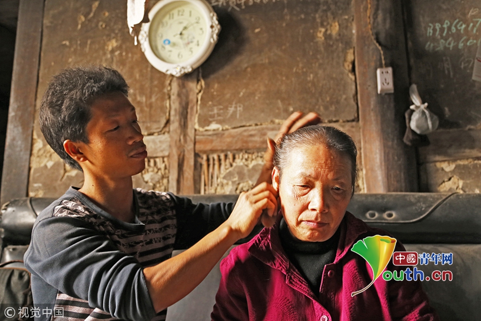 37歲的王顯強,家在重慶市綦江區(qū)永新鎮(zhèn)伏牛村。23年前,王顯強的母親田井貴意外摔倒導(dǎo)致全身癱瘓,吃喝拉撒全由王顯強的父親照顧。2003年,王顯強的父親去世,深受打擊的田井貴從此開始不再和外人說話。“我媽就是我的全部!”原本在浙江打工的王顯強回到家里,為了養(yǎng)活自己和母親,他決定背著母親到重慶主城打工。從此,身材不高的王顯強,用自己不算厚實的后背,讓母親有了新的依靠。