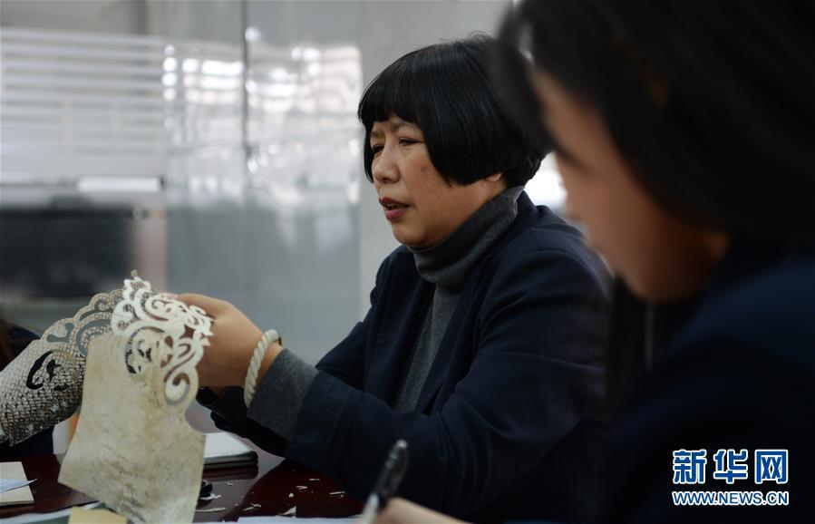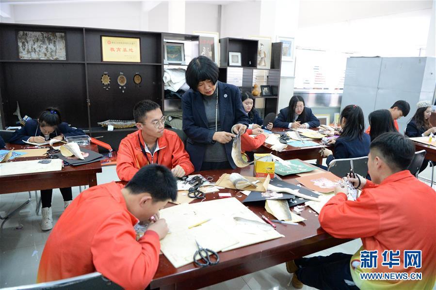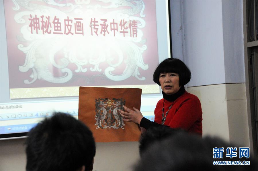 12月3日,張琳在哈爾濱輕工業(yè)學(xué)校講授魚皮畫制作技藝。國(guó)家級(jí)非物質(zhì)文化遺產(chǎn)赫哲族魚皮制作技藝是我國(guó)赫哲族傳統(tǒng)手工藝術(shù)。作為這項(xiàng)技藝的黑龍江省級(jí)傳承人,十余年來(lái),張琳一直從事魚皮畫的研究和創(chuàng)作,并通過做推廣、開講座、辦活動(dòng),讓更多年輕人了解并喜歡上這一傳統(tǒng)手工藝,將這項(xiàng)瀕臨失傳的藝術(shù)更好地傳承下去。新華社記者 王凱 攝