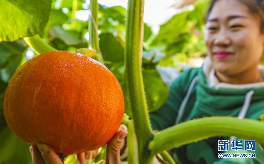 12月3日,一位北京游客在大廠回族自治縣一家農(nóng)業(yè)園采摘京紅栗南瓜。