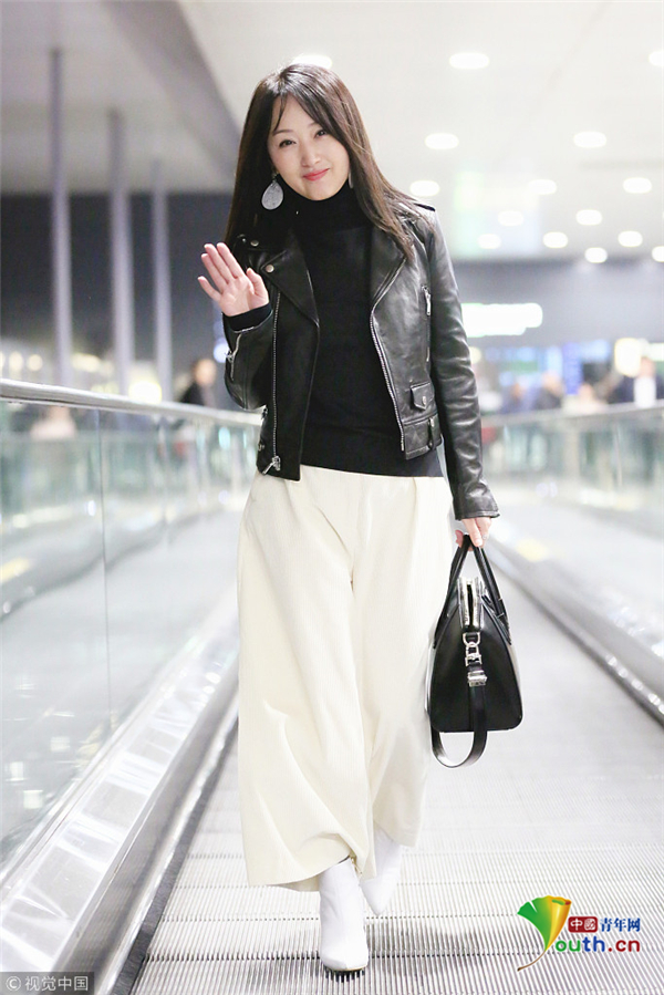 12月9日,上海,楊鈺瑩現(xiàn)身上海虹橋機場,她身著黑色皮衣的她搭配白色直筒褲,手提大牌包優(yōu)雅知性,長發(fā)披肩溫柔甜美似少女,見跟拍主動揮手示好,保養(yǎng)得當?shù)乃笮阊┌准∧w,不顯年紀!