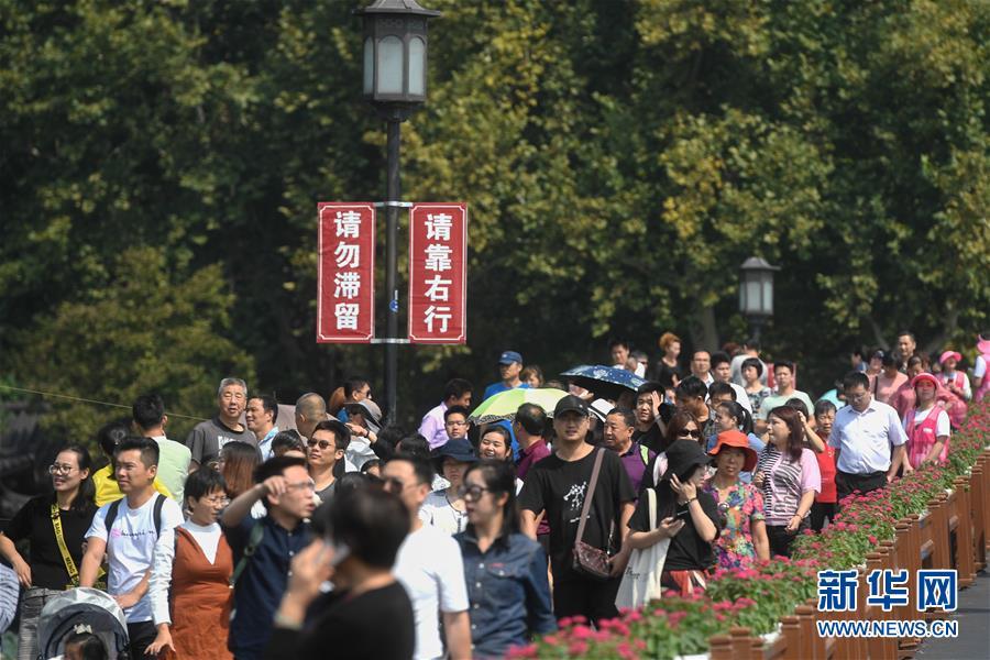 10月7日,杭州西湖風(fēng)景區(qū)的斷橋上游人絡(luò)繹不絕。為維持秩序,景區(qū)采取了雙向游客互相隔離的措施。當(dāng)日是國(guó)慶黃金周最后一天,眾多游客來(lái)到杭州西湖景區(qū)觀(guān)光游覽,熱度不減。據(jù)杭州市旅游委員會(huì)公布的數(shù)據(jù)顯示,從10月1日起截至10月7日12時(shí),國(guó)慶七天杭州市各景區(qū)(點(diǎn))接待游客總量達(dá)到1776.14萬(wàn)人次,其中西湖風(fēng)景名勝區(qū)管委會(huì)所屬公園景點(diǎn)共接待游客452.2萬(wàn)人次。新華社記者 黃宗治 攝
