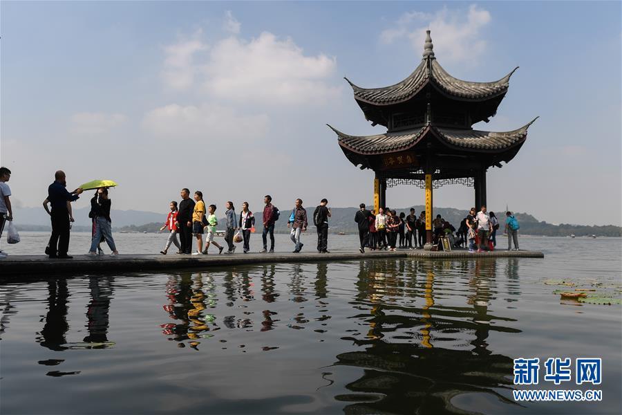 10月7日,游客在杭州西湖風(fēng)景區(qū)集賢亭游覽。當(dāng)日是國(guó)慶黃金周最后一天,眾多游客來(lái)到杭州西湖景區(qū)觀(guān)光游覽,熱度不減。據(jù)杭州市旅游委員會(huì)公布的數(shù)據(jù)顯示,從10月1日起截至10月7日12時(shí),國(guó)慶七天杭州市各景區(qū)(點(diǎn))接待游客總量達(dá)到1776.14萬(wàn)人次,其中西湖風(fēng)景名勝區(qū)管委會(huì)所屬公園景點(diǎn)共接待游客452.2萬(wàn)人次。新華社記者 黃宗治 攝
