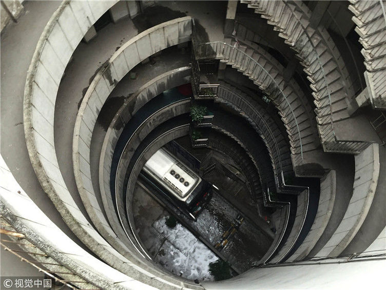 重慶洋人街景區(qū)內(nèi)的穿樓觀光索道吸引不少游客體驗(yàn)。據(jù)悉,跨度長1000米的觀光索道將隨著洋人街的拆遷而搬離。中新社記者陳超 攝 2017年9月27日,重慶,南岸區(qū)某小區(qū)的“螺旋”停車場,從公路到車庫要下5層樓,司機(jī)需要轉(zhuǎn)無數(shù)個360度圈。圖片來源:視覺中國