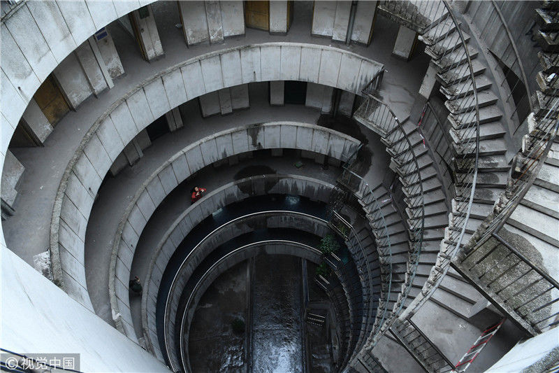 2018年12月11日,重慶紅旗河溝汽車站辦公大樓。八層的圓筒型轉轉樓,站在樓里往上望,可以看見碗口大的天空。圖片作者:尋常