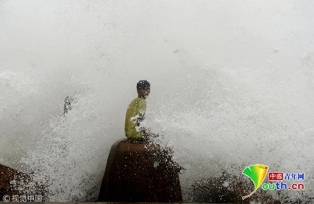 當(dāng)?shù)貢r(shí)間2018年12月16日,印度欽奈,颶風(fēng)“佩太”正向印度東海岸逼近,引發(fā)狂風(fēng)巨浪。