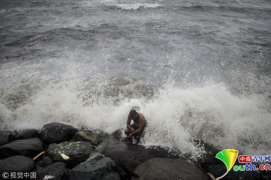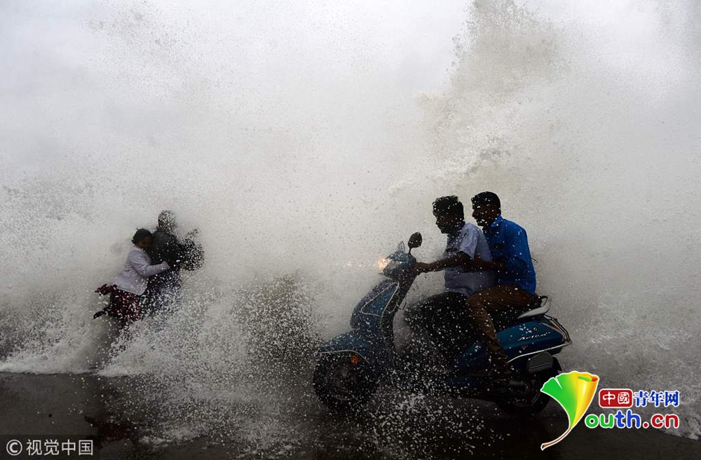 當?shù)貢r間2018年12月16日,印度欽奈,颶風(fēng)“佩太”正向印度東海岸逼近,引發(fā)狂風(fēng)巨浪。