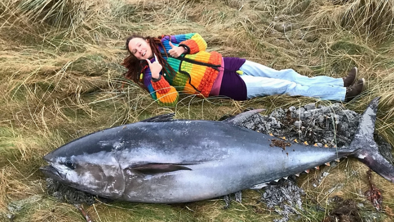 比人還大!狂風暴雨后2米長巨型藍鰭 ...