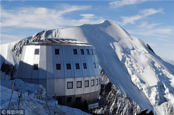2012年8月6日消息(具體拍攝時間不詳),法國圣熱爾維,一座坐落在阿爾卑斯山脈上海拔3835米的旅館近日落成,旅館目前處于試運行狀態(tài)直到8月底向公眾開放。這座旅館共有120個床位,達到了高環(huán)境質(zhì)量標(biāo)準(zhǔn)。