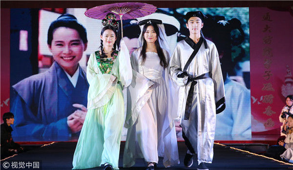 2018年12月17日晚,江蘇南通大學(xué)紡織服裝學(xué)院慶祝改革開放40周年首屆非專業(yè)新生服飾秀精彩上演,41位模特身著極具年代感的服裝,展示了55套穿搭造型,演繹了40年來(lái)不同年代的衣著風(fēng)采。
