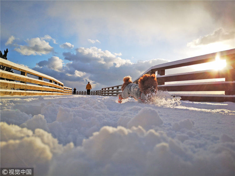 2018年12月7日,山東煙臺,雪后的海濱景色。