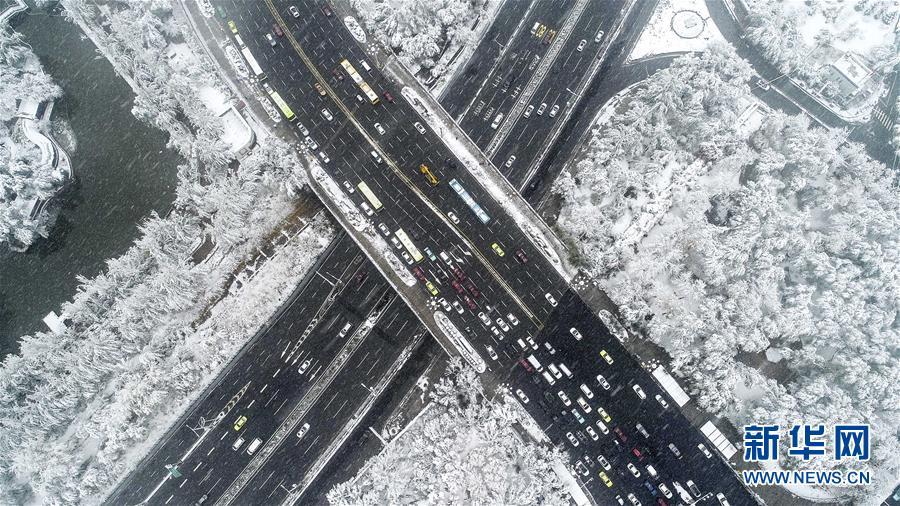 這是2018年10月18日航拍的雪后烏魯木齊西大橋。 大地之色,俯仰之間;壯美山河,是我的祖國。2018年,新華社記者操縱無人機“飛閱”華夏大地,在最美的時節(jié),定格下她的色彩斑斕。 新華社記者 江文耀 攝