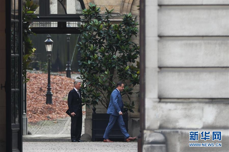 12月19日,比利時(shí)國(guó)王菲利普(左)在位于首都布魯塞爾的王宮送別前來(lái)會(huì)面的政要。新華社記者鄭煥松攝