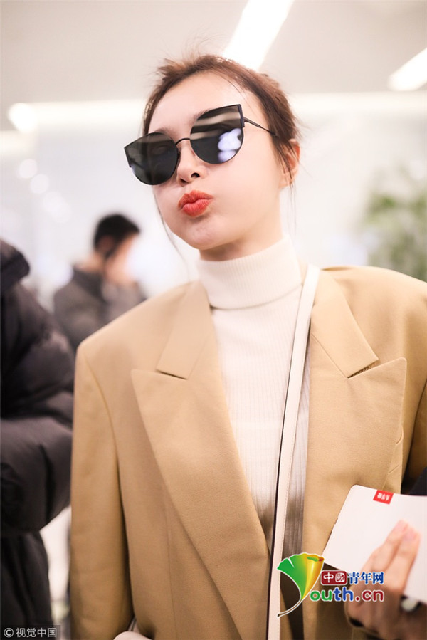 2018年12月11日,上海,秦嵐現(xiàn)身機(jī)場(chǎng)。她穿淺西裝配高領(lǐng)毛衣溫暖又時(shí)尚,梳丸子頭清新減齡,機(jī)場(chǎng)獲粉絲送告白信,嬌羞嘟嘴賣萌少女范十足。