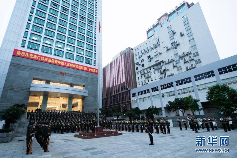12月20日,中國人民解放軍駐澳門部隊(duì)在澳門新口岸營區(qū)舉行升國旗儀式,慶祝澳門回歸祖國暨中國人民解放軍進(jìn)駐澳門19周年。 新華社記者張金加攝
