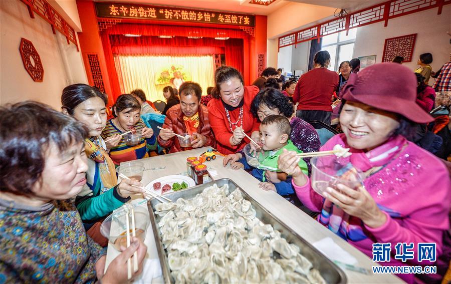 12月20日,老鄰居們一起吃餃子敘友情。 當(dāng)日,北京市門頭溝區(qū)東辛房街道一百多名棚戶區(qū)改造后搬進新樓房的老鄰居們聚在一起包餃子、吃餃子,迎接即將到來的冬至。 新華社記者李欣攝