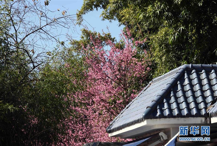 這是昆明市西山區(qū)一小區(qū)內(nèi)盛開(kāi)的櫻花(12月21日攝)。新華社記者楊宗友攝