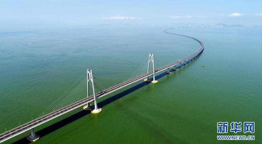 【世界最長跨海大橋——港珠澳大橋】港珠澳大橋東接香港、西接珠海和澳門,總長55公里。是中國第一例集橋、雙人工島、隧道為一體的跨海通道,同時也是世界最長跨海大橋。港珠澳大橋于2018年10月24日正式通車,屆時駕車從香港到珠海、澳門僅需30分鐘。
