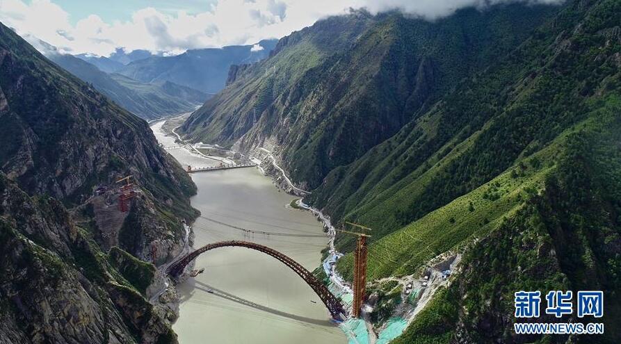 9月28日無人機拍攝的川藏鐵路拉林段重點標志性工程藏木特大橋。當日,隨著最后一節(jié)鋼管拱的對位和鎖定完畢,川藏鐵路拉林段藏木特大橋成功合龍,標志著大橋主體結(jié)構(gòu)施工取得了關(guān)鍵性勝利。藏木特大橋由中國中鐵廣州局集團承建,拱高112米,橋橫跨雅魯藏布江峽谷,水深66米。新華社記者普布扎西攝