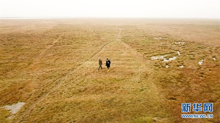 12月22日,王三益(右)和生態(tài)保護(hù)協(xié)會(huì)成員江軍在菜子湖濕地進(jìn)行越冬候鳥(niǎo)巡護(hù)(無(wú)人機(jī)拍攝)。每年10月開(kāi)始,候鳥(niǎo)遷徙至菜子湖,次年3月飛回北方,期間王三益會(huì)和協(xié)會(huì)成員開(kāi)展越冬候鳥(niǎo)巡護(hù)以及清理濕地灘涂垃圾。