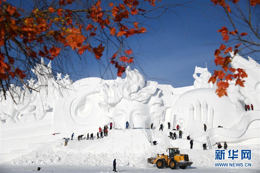 目前,以“筑夢(mèng)冰天雪地,共享金山銀山”為主題的第二十屆哈爾濱冰雪大世界正在施工,現(xiàn)場(chǎng)一片繁忙景象。 新華社記者 王建威 攝