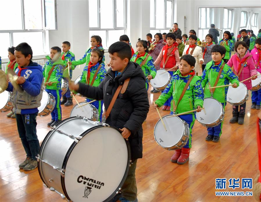 烏什·衢州小學(xué)鼓號隊成員在訓(xùn)練(12月19日攝)。