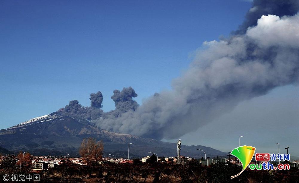 意大利埃特納火山持續(xù)噴發(fā) 黑煙滾滾 ...