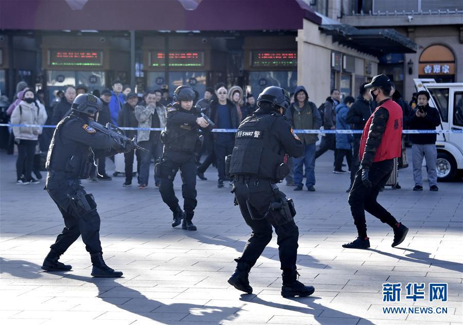 12月25日,市民觀(guān)看處置突發(fā)事件演練。 當(dāng)日,北京鐵路公安局、北京市公安局相關(guān)單位、北京火車(chē)站、北京急救中心等單位參加的春運(yùn)安保演習(xí)在北京火車(chē)站廣場(chǎng)舉行。演習(xí)包括處置突發(fā)事件、急救、治安維持、現(xiàn)場(chǎng)疏導(dǎo)等項(xiàng)目,保障春運(yùn)期間旅客平安出行。 新華社記者 李欣 攝