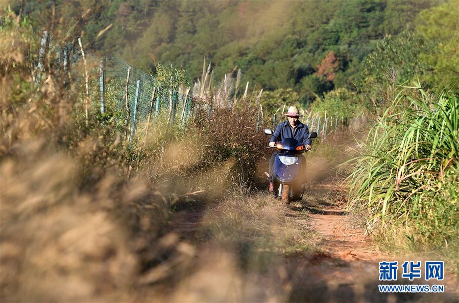 舒港發(fā)騎著電動(dòng)車去查看自家種植的西洋參(10月27日攝)。