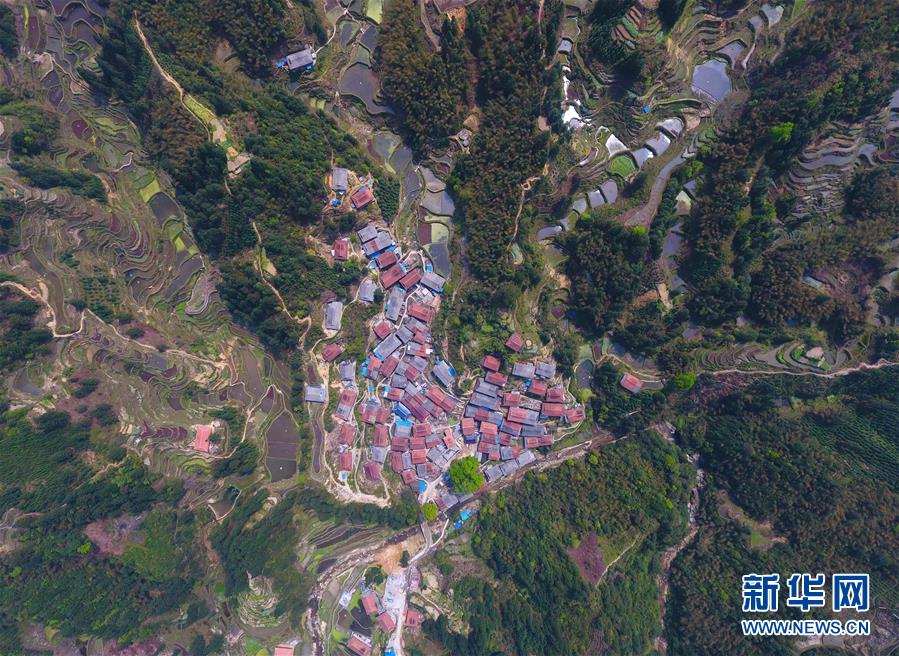 位于大苗山深處的烏英苗寨(3月27日無(wú)人機(jī)拍攝)。