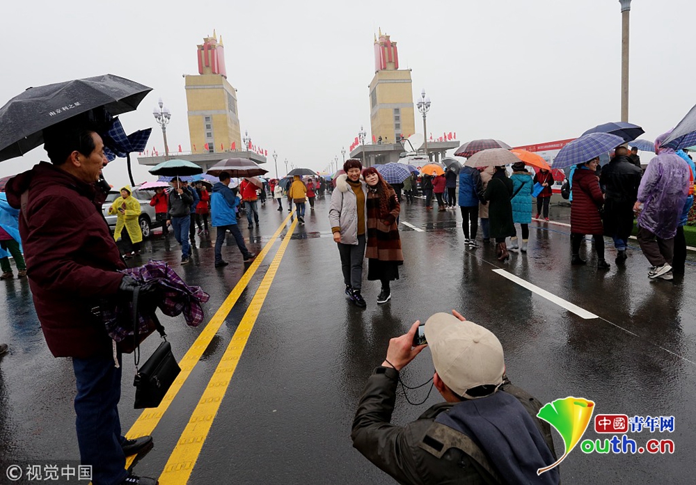 2018年12月26日,南京。南京長江大橋維修改造工程竣工通車在即,12月26日至28日三天向公眾開放,12月26日,“市民開放日”首日,早晨九時許,雖然下著雨,但記者在南京長江大橋入口和橋上看到,如織的市民打著傘來到大橋,整個橋上全是撐傘觀看的市民,足有萬人,十分壯觀。