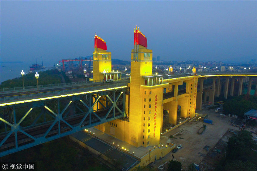 2016年10月28日晚,服役48年的南京長江大橋正式封閉,進(jìn)入合同工期長達(dá)27個月的改造提升期。身為我國橋梁建設(shè)領(lǐng)域的扛鼎之作,南京長江大橋的此次封閉改造牽涉到公路繁忙、鐵路風(fēng)險、技術(shù)攻關(guān)、文物保護(hù)等諸多難點(diǎn),不僅影響面廣,而且社會關(guān)注度極高。如今,隨著整個工程進(jìn)入收尾階段,即將于2018年12月底正式通車。圖為2018年12月13日,夜幕降臨,南京長江大橋歸位后的玉蘭花燈重新點(diǎn)亮。大橋玉蘭花燈柱共有299根,每根燈柱上有5盞玉蘭花燈,1大4小,一共1495盞。