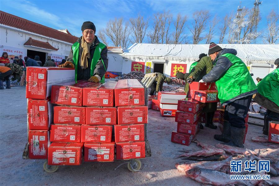 12月27日,在吉林松原查干湖漁場,工人們將魚裝箱。 隨著吉林松原查干湖冬捕知名度不斷提高,全國各地消費(fèi)者對查干湖魚的需求量逐年增大。2014年開始,多個電商平臺和快遞企業(yè)紛紛抓住商機(jī)進(jìn)駐查干湖。經(jīng)過多年發(fā)展,借助互聯(lián)網(wǎng)銷售優(yōu)勢和日趨完善的快遞網(wǎng)絡(luò),全國多地的百姓可以在魚出水后的48小時內(nèi)品嘗到查干湖魚的鮮美滋味。 新華社記者張楠攝
