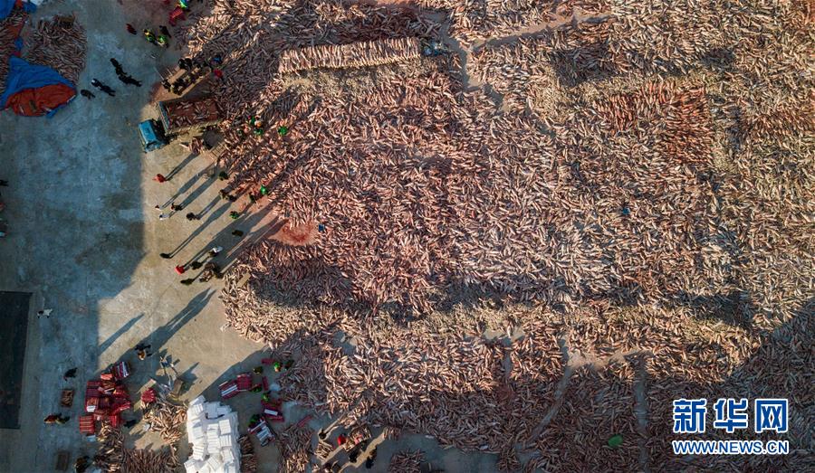 12月27日,在吉林松原查干湖漁場,工人們將魚裝箱(無人機(jī)拍攝)。 隨著吉林松原查干湖冬捕知名度不斷提高,全國各地消費(fèi)者對查干湖魚的需求量逐年增大。2014年開始,多個電商平臺和快遞企業(yè)紛紛抓住商機(jī)進(jìn)駐查干湖。經(jīng)過多年發(fā)展,借助互聯(lián)網(wǎng)銷售優(yōu)勢和日趨完善的快遞網(wǎng)絡(luò),全國多地的百姓可以在魚出水后的48小時內(nèi)品嘗到查干湖魚的鮮美滋味。 新華社記者張楠攝