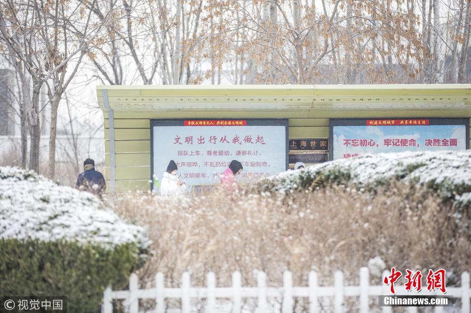 山東濱州發(fā)布道路結(jié)冰黃色預(yù)警信號市區(qū)出現(xiàn)較明顯降雪,路表溫度低于0℃。圖片來源:視覺中國
